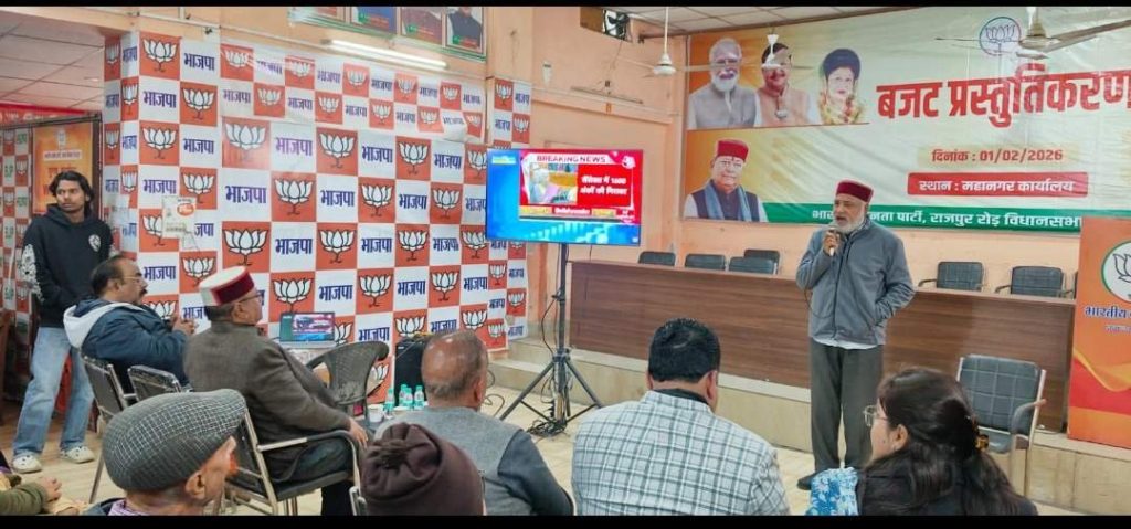 भारतीय जनता पार्टी महानगर कार्यालय पर देश के यशस्वी प्रधानमंत्री श्री नरेन्द्र मोदी जी के दूरदर्शी नेतृत्व में माननीय केंद्रीय वित्त मंत्री श्रीमती निर्मला सीतारमण जी द्वारा प्रस्तुत किया गया केंद्रीय बजट 2025–26 को राजपुर विधायक खजान दास एवं दर्जाधारी मंत्री ज्योति प्रसाद गैरोला जी ने कार्यकर्ताओं के साथ सुना गया।