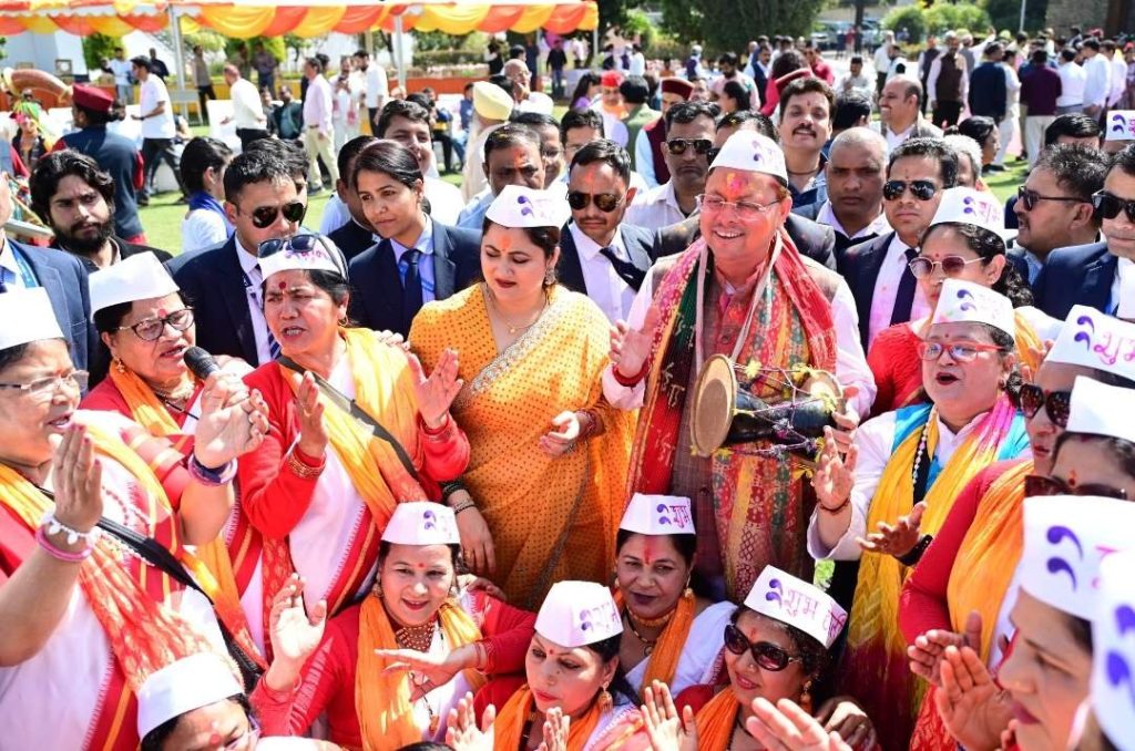 मुख्यमंत्री आवास का प्रांगण सोमवार को होली के रंगों में सराबोर नजर आया। इस दौरान प्रदेश की सांस्कृतिक समृद्धि और एकता के भी दर्शन हुए। पूर्वाह्न से ही प्रदेश भर के लोक कलाकारों, संस्कृति कर्मियों की टोलियां होली गायन करते हुए, सीएम आवास पहुंचती रही। एक तरफ गढ़वाल-कुमाऊं से लेकर जौनसार तक का होली गायन था, नृत्य था। इस दौरान होली के गीत गूंजे। पारंपरिक गायन हुआ। ढोल, मंजीरे बजे। पारंपरिक वाद्य यंत्रों की संगत ने होली गीतों के प्रभाव को और बढ़ा दिया। आओ दगड़ियो, नाचा गावा, आ गई रंगीली होली का आह्वान यदि कुमांउ से आए कलाकारों ने किया, तो राठ क्षेत्र के कलाकारों ने गाया-आई डान्ड्यू बसंत, डाली मा मौल्यार।